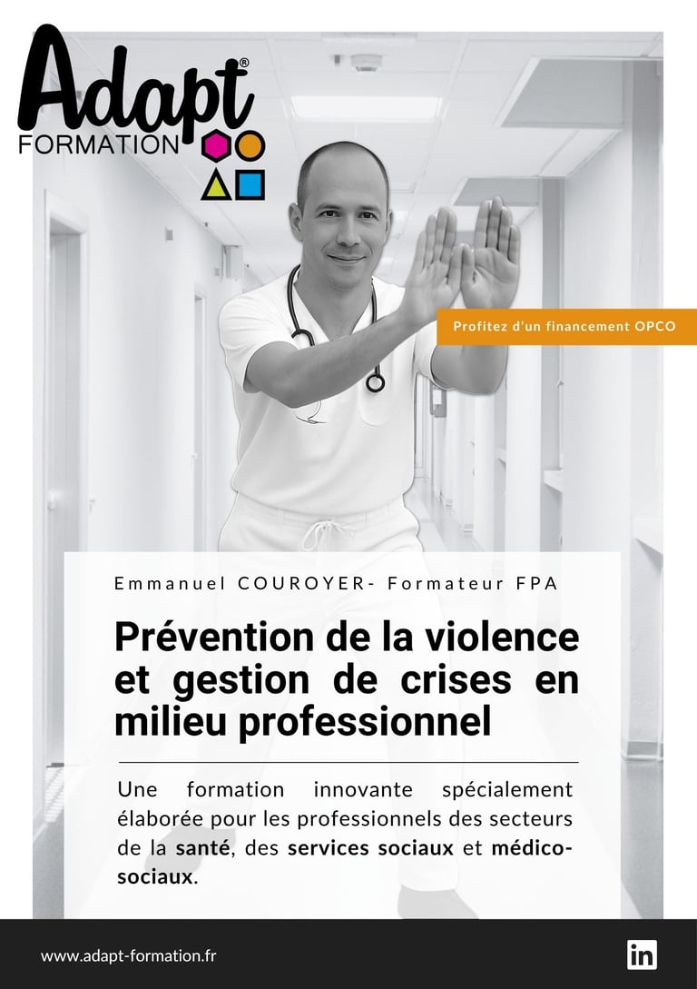 "La formation proposée fournit des outils immédiatement applicables. Comparée à d'autres formations que j'ai déjà suivies, la formation Adapt reflète notre réalité quotidienne et constitue une réponse adaptée face à la violence que subissent les professionnels. La formation Adapt offre ce que les autres ne proposent pas. Elle va plus loin et propose des solutions réalisables à un ou plusieurs professionnels " Clarice P. - ide Psy (85)
